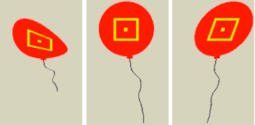 Esto significa que la topología estudia la configuración relativa de los objetos entre sí. A diferencia de la geometría, la ubicación de los objetos en el espacio absoluto es irrelevante en la topología. En la Figura 1.5, hay un globo que está distorsionado de diferentes maneras. Las propiedades geométricas del rectángulo y el punto cambian con la distorsión: el área se contrae o se agranda, la forma se sesga, la distancia y la dirección desde las esquinas del rectángulo hasta el punto central se modifican. Sin embargo, la relación topológica es constante: el punto siempre permanece dentro del polígono.