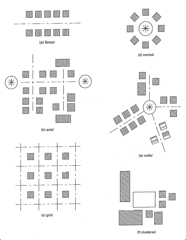 Podemos diseñar la disposición de los objetos para crear relaciones espaciales que permitan funciones específicas. Este es un principio fundamental en la planificación espacial y la arquitectura del paisaje. Considere, por ejemplo, la disposición de casas y calles en la Figura 1.7. ¿Te imaginas cuántas interacciones humanas sucederán en estos lugares? ¿Dónde preferirías vivir?