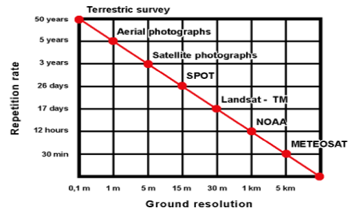 Desde principios de los años setenta, los satélites de observación de la Tierra (EO; Erth Observation) se han convertido en una herramienta importante también para las Ciencias de la Tierra. A pesar de la baja resolución espacial de los primeros satélites LANDSAT (aproximadamente 80 m) y de los problemas asociados para reconocer e interpretar objetos individuales y fenómenos lineales, las imágenes proporcionadas por el sensor LANDSAT permitieron por primera vez cartografiar zonas de difícil acceso, así como detectar cambios de fenómenos específicos en la superficie terrestre durante periodos de tiempo más largos.