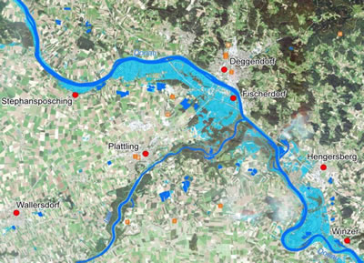 La gran ventaja de los sensores RADAR es que funcionan en todas las condiciones meteorológicas (a diferencia de los sensores ópticos de observación de la Tierra, los haces de radar penetran en las nubes) y no necesitan luz diurna para registrar imágenes. Además, las señales de radar pueden medir la rugosidad de las estructuras de la superficie terrestre hasta centímetros y pueden penetrar en el suelo hasta un máximo de 30 metros en materiales de baja conductividad como la arena seca o el granito. De ahí que la teledetección basada en RADAR tenga un amplio campo de aplicación. Resulta especialmente adecuada para analizar entornos marinos, glaciares o inundaciones (véase la Figura 2.13), puede utilizarse como complemento de los datos ópticos para cartografiar el uso del suelo en zonas de densa nubosidad, así como para crear modelos de elevación mediante interferometría.