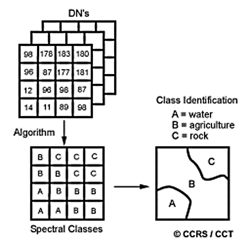 La clasificación de imágenes es el proceso de extracción de clases de objetos (temáticos) a partir de un conjunto de datos de imágenes multiespectrales.