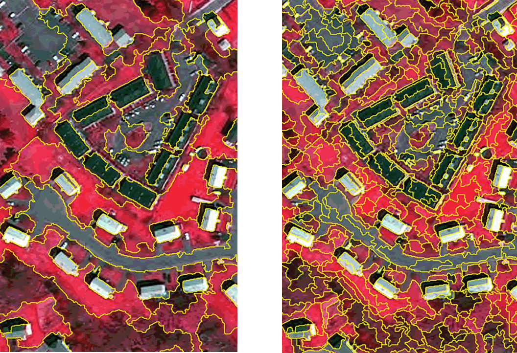 - Segmentación de una imagen en objetos discretos. Aquí, los píxeles vecinos y similares se combinan para formar objetos. Este proceso de segmentación tiene lugar en distintos niveles de escala (véase la Figura 2.19).