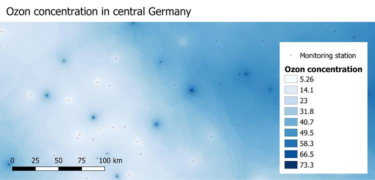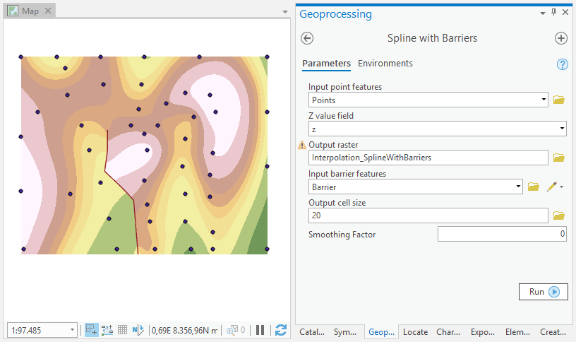 Las técnicas de interpolación métrica, en cambio, calculan valores medios ponderados entre los puntos de muestra. Por lo tanto, la escala de medición del atributo interpolado también es métrica. La escala de medición es, por lo tanto, lo primero que hay que comprobar antes de elegir un algoritmo de interpolación.