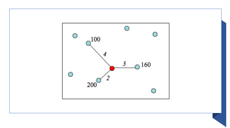 - Encuentra los puntos de muestra vecinos de la ubicación “blanco” (ej. a través de n vecinos más cercanos o radio de búsqueda r)