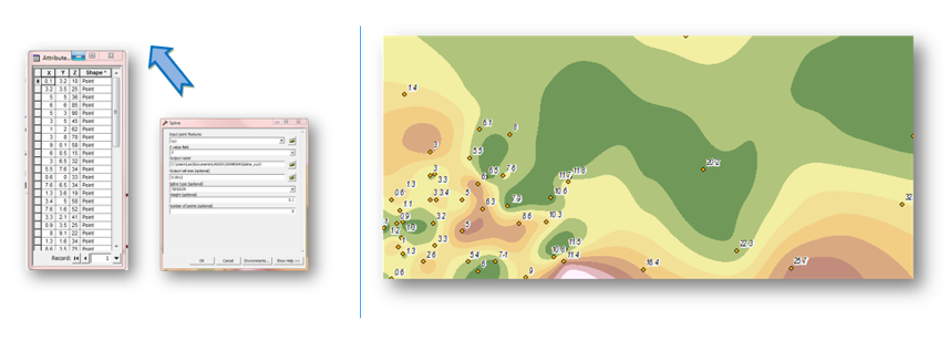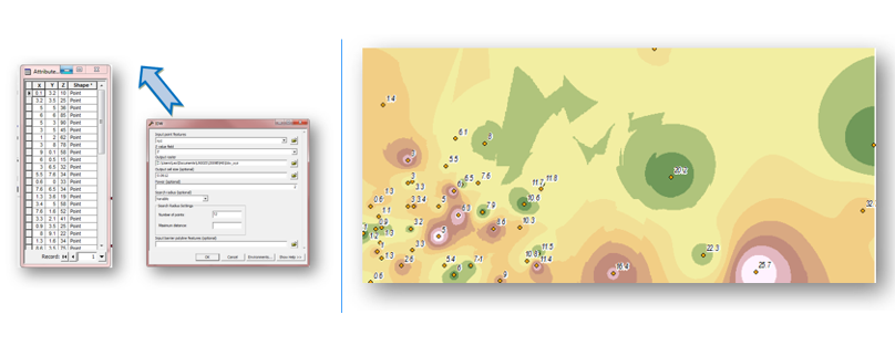 Generalmente asumimos que hay una superficie temática o una superficie topográfica continúa con la cual debemos tratar, donde los valores de atributo varían continuamente en el espacio. Así que, teóricamente, entre dos puntos vecinos podemos siempre insertar otro punto cuyo valor de atributo es el intermedio de los dos puntos vecinos. Piense sobre la primera ley de la Geografía de Tobler que afirma que las cosas cercanas están más relacionadas que las cosas distantes. Esta suposición es la básica para las técnicas de interpolación: el valor de atributo en un punto interpolado será más similar a los puntos de medición que están más cerca de éste que los que están más distantes.