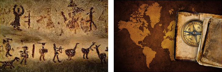 La necesidad de comunicar información espacial fue quizás uno de los desencadenantes más tempranos e importantes en el desarrollo del lenguaje. Los miembros de una tribu necesitaban comunicar de alguna manera las ubicaciones de buenos cotos de caza o abundantes parches de arbustos de bayas (véanse los primeros mapas en la Figura 1.2).