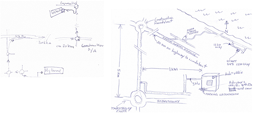 En la Figura 1.6 vemos un mapa mental y esquemático de la localización de una fiesta. Es un buen ejemplo de cómo utilizamos un mapa como modelo de la realidad, en este caso para identificar el camino a una fiesta. Como se observa, el mapa es una abstracción de la realidad: la realidad ha sido simplificada para transmitir sólo la información útil para encontrar el lugar en donde se encuentra la fiesta. De esta manera, los anfitriones han construido un modelo espacial simple y efectivo.