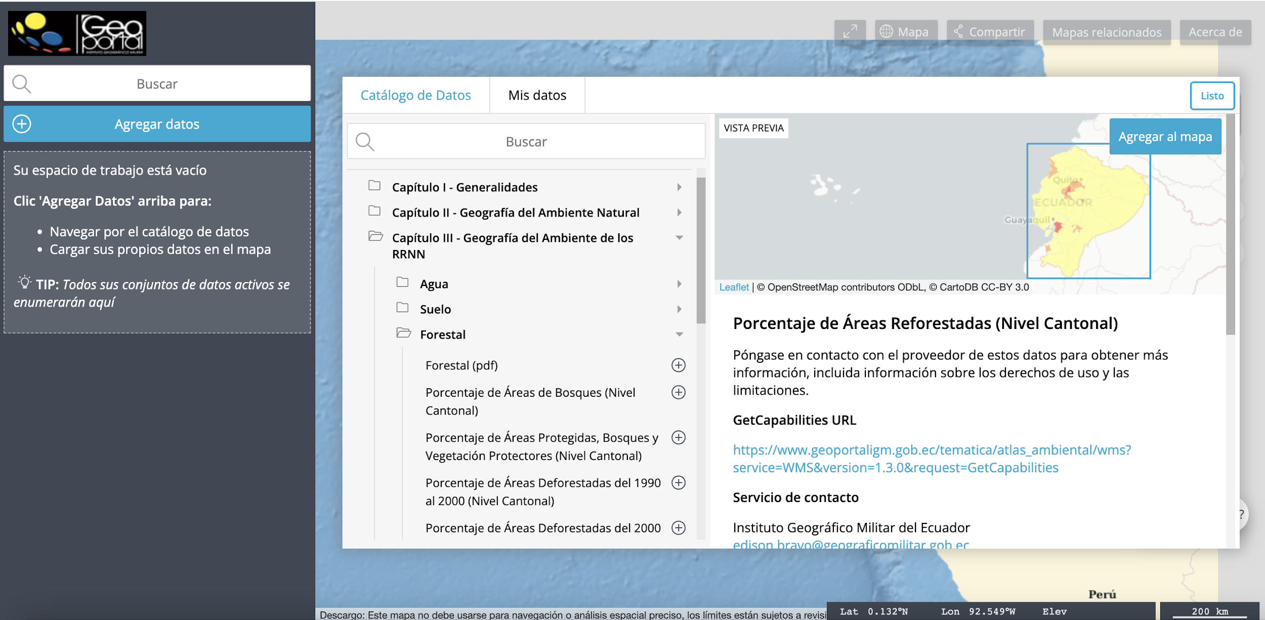 El uso económico de los recursos naturales está ligado inseparablemente con nuestra vida, sin embargo, para evitar o minimizar los efectos negativos tiene que llevarse a cabo de la mejor forma posible. La utilización cuidadosa y sustentable de los recursos geogénicos (por ejemplo, la minería, el agua) y de los recursos biogénicos (por ejemplo, agricultura y silvicultura, pesca) solo puede efectuarse bajo consideración extensa de una multitud de otras condiciones “espaciales” de marco, por lo tanto, los SIG ya hace mucho pertenecen a los instrumentos de gestión indispensables de la economía orientada a los recursos (Ejm. Atlas ambiental del Ecuador, Figura 2.5).