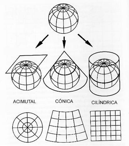 El sistema de transformación de una superficie esférica a una superficie plana se denomina proyección. Dicha definición hace referencia a cualquier objeto por lo que afectará también a fotografías, imágenes de satélite, imágenes de radar o mapas en el ordenador (teniendo en cuenta que la imagen que aparece en una pantalla de un monitor es plana).