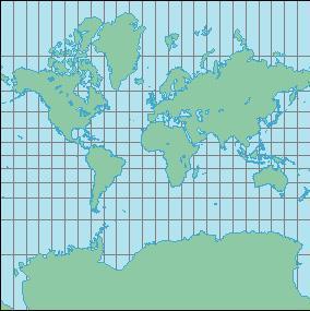 La proyección de Mercator es una proyección cilíndrica conforme que proporcionó una facilidad considerable en la navegación para generaciones de marineros durante años y sigue siendo una de las proyecciones más importantes. La proyección de Mercator en su posición normal representa casi toda la Tierra. Las áreas de las latitudes de 80° - 85 ° generalmente ya no se mapean porque la distorsión aumenta mucho en la dirección de los polos, y estos se encuentran en el infinito. La exageración del área en Europa, Rusia y América del Norte proporciona una impresión incorrecta del tamaño de las respectivas masas de tierra: explore este fenómeno en el enlace de la Figura 4.22. Por lo tanto, la utilidad de la proyección de Mercator se limita a las zonas no polares.