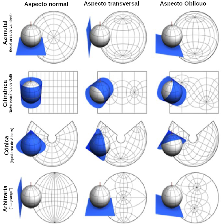 Los parámetros de proyección son de dos tipos: angulares y lineales (Kimerling et al. 2016).