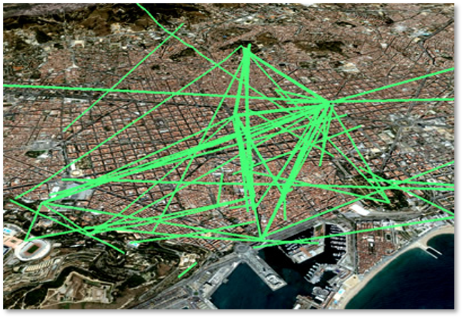 Hoy en día, cada vez más servicios de redes sociales integran funcionalidades de geo-tagging o se basan completamente en el enfoque del mapeo colaborativo. Sus miembros comparten, comunican y comentan experiencias del espacio cotidiano mediante informaciones georeferenciadas. Esto quiere decir que ellos conectan (“tagging”) informaciones generadas por usuarios con referencias espacialmente explícitas, lo que se llama “geo-tagging”. Estas prácticas también son resumidas bajo el término “Neogeography” (Turner 2006; Hudson-Smith et al. 2009; Rana y Joliveau 2009). El usuario o consumidor se torna en un ‘Prosumidor’ que puede saltar entre recepción, producción y coproducción de contenidos (Tapscott y Williams 2007). Con un geobrowser como Google Maps o Bing Maps, casi cualquier tipo de información digital puede ser dotada con un geocode – por ejemplo, una dirección postal o una coordenada. Ya hoy día se hallan en muchas fotos, vídeos, noticias y entradas de blog que se publican en Internet. El geocode permite el ordenamiento, búsqueda, análisis y visualización de contenidos digitales, relacionado al espacio.